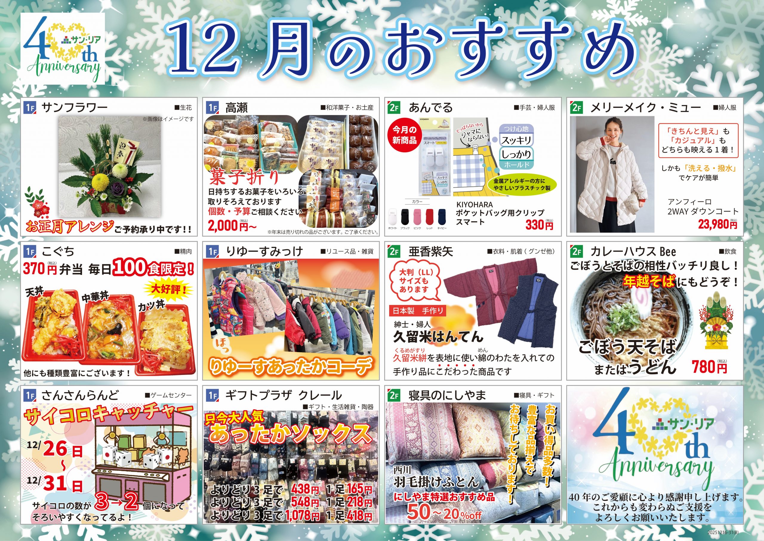 【INFO】サンリア年末年始の営業時間のご案内