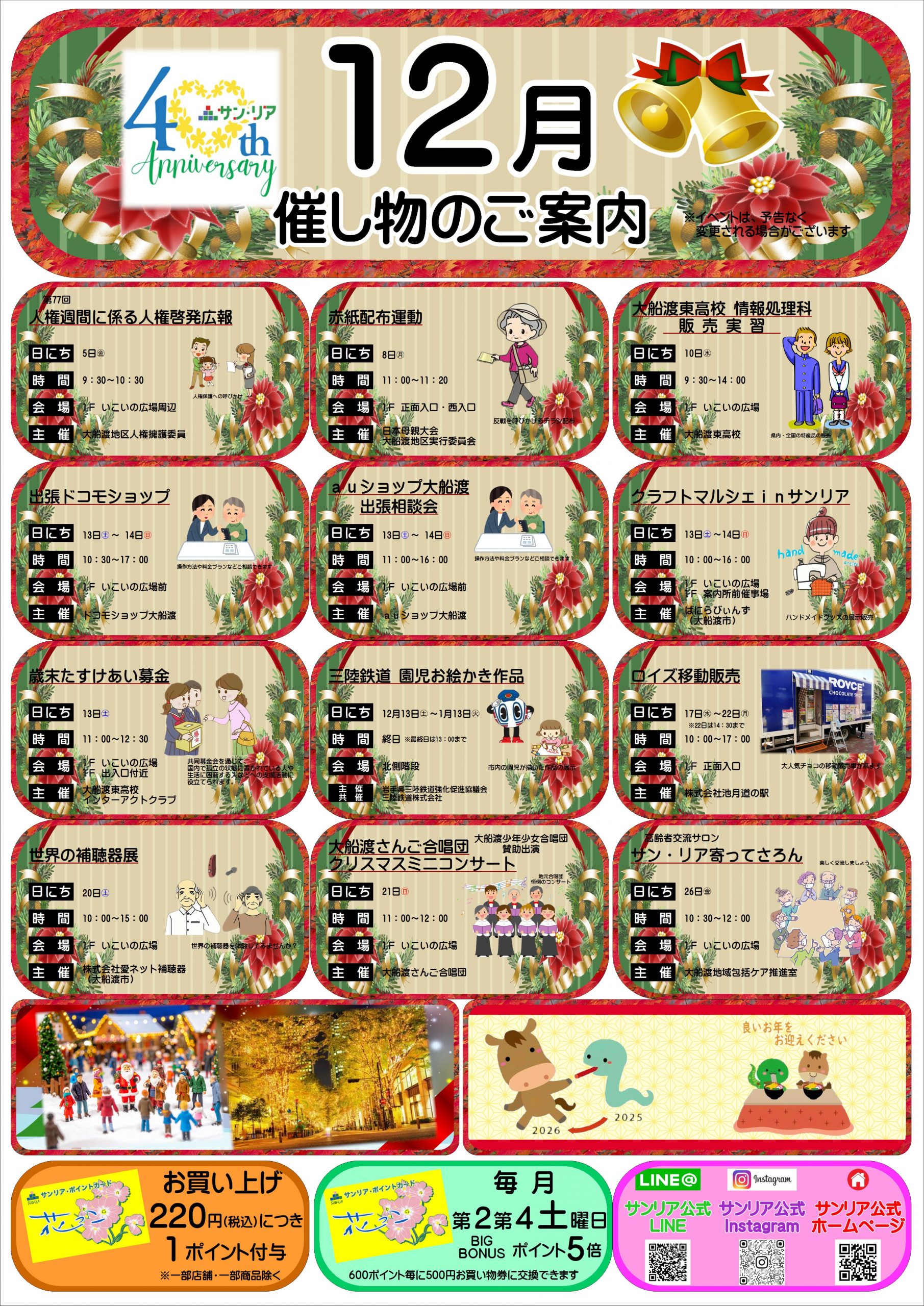 岩手県大船渡市の南三陸ショッピングセンター サンリアです。 皆様のお買い物が楽しくなるようなセール情報、ショップ情報、イベント情報などを発信していきます。