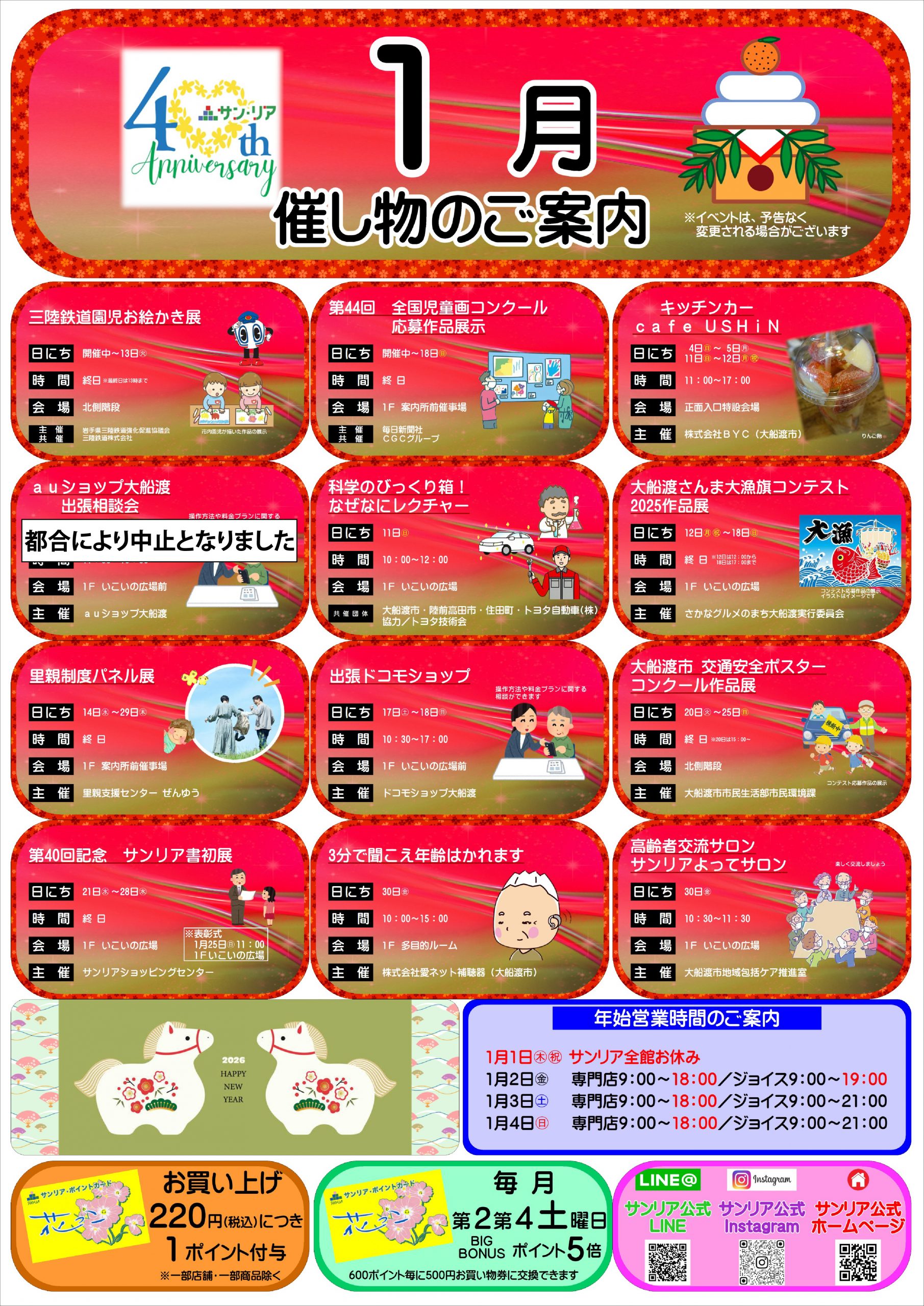 「大船渡さんま大漁旗コンテスト2025作品展」や「第40回記念サンリア書初展」など展示会を多数開催いたします!