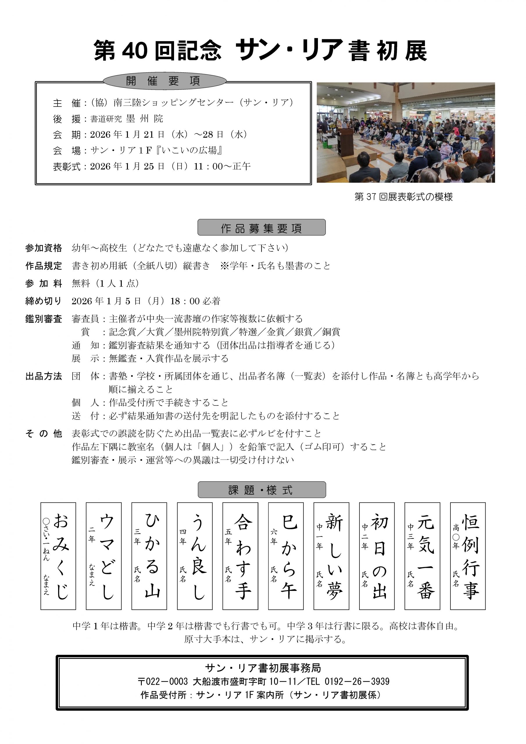 作品受付所:サン・リア1F案内所(サン・リア書初展係)